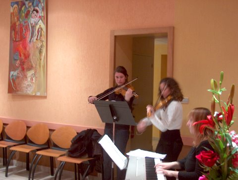 le vernissage de Mysraël en interprétant des airs Klezmer